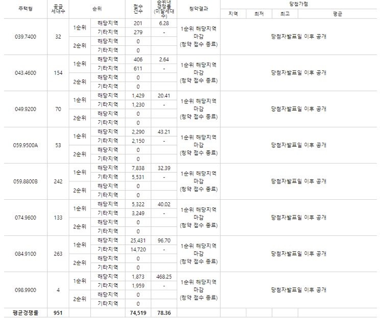 네 98타입 최고경쟁률로 468대 1찍어버렸네요앞으로 남은 팔8,팔10,권선6,오목천