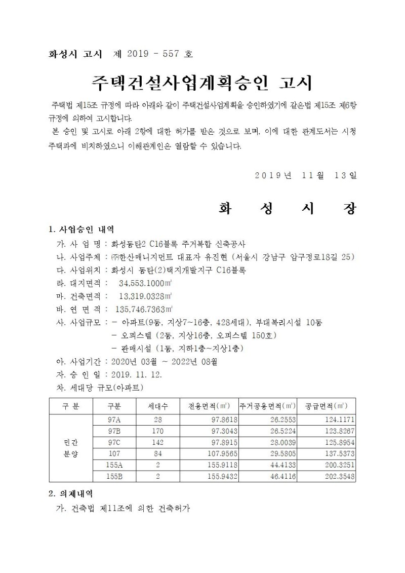 ○ 사업계획승인일: 2019.11.12.